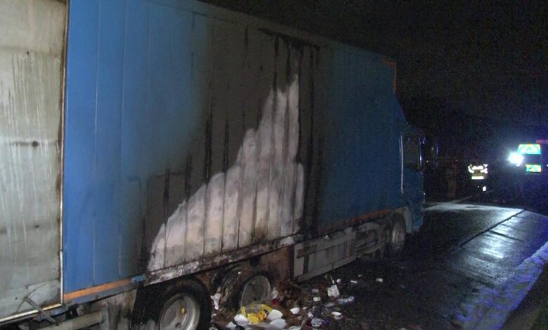 Sürücü, kamyonu emniyet şeridine çekerek yangına müdahale etmeye çalıştı ancak kısa sürede çıkan yangın, treyleri de sardı.