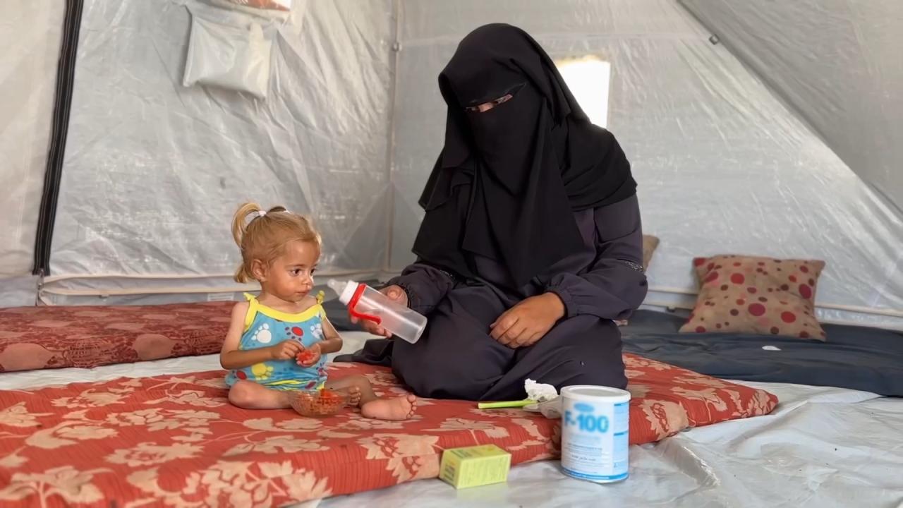 Şam bir süre hastane hastalıkları nedeniyle acı çekti, ancak bakım olasılığı yok, çadıra döndüğünü söyledi, “Yiyecek, yiyecek ve bebek bezi” bulmakta zorluk çekti.